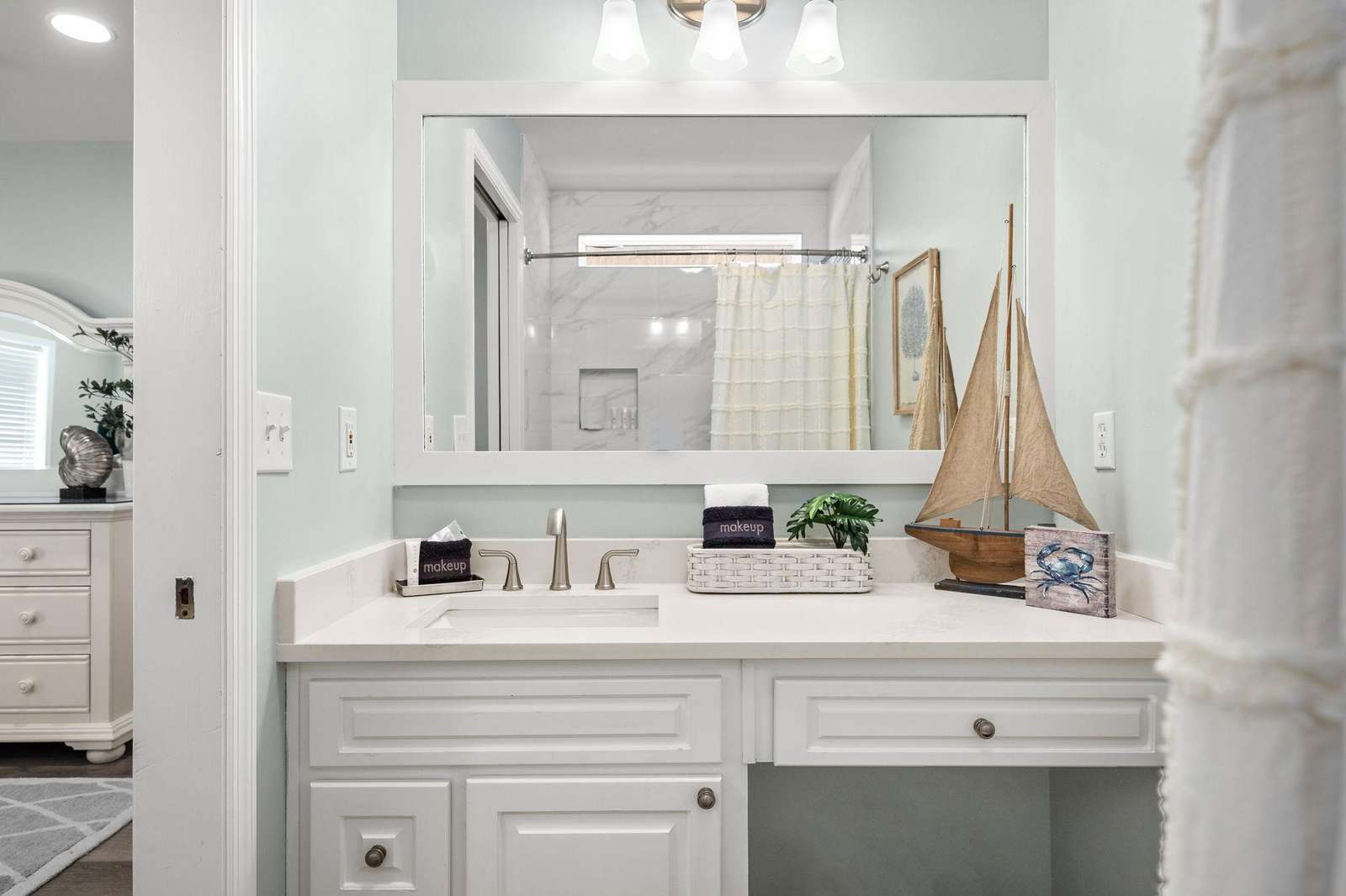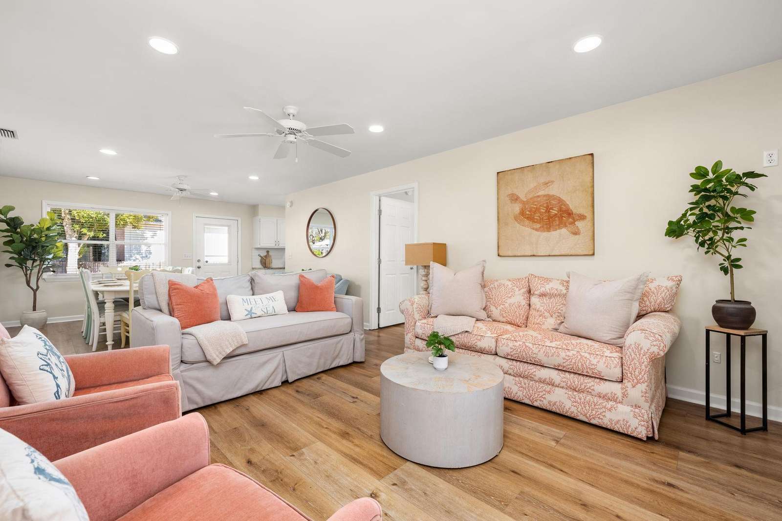 • Light-filled living areas designed for gathering after a day at the beach.
