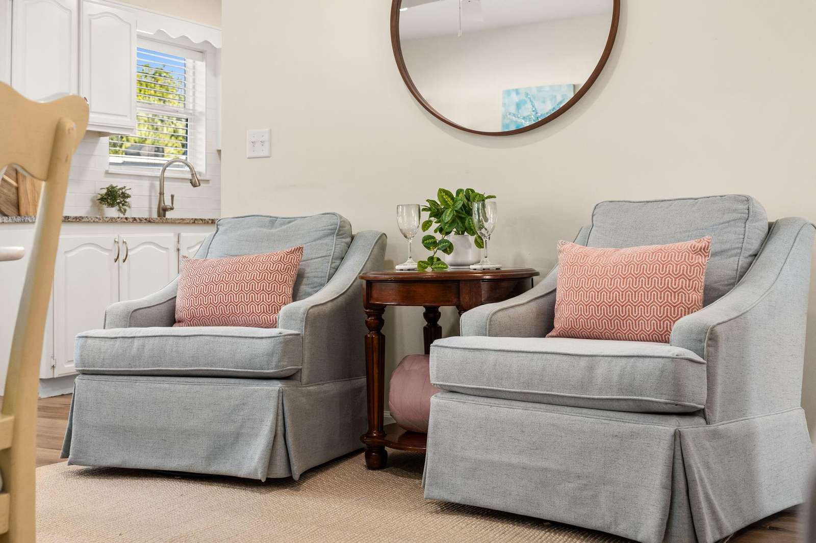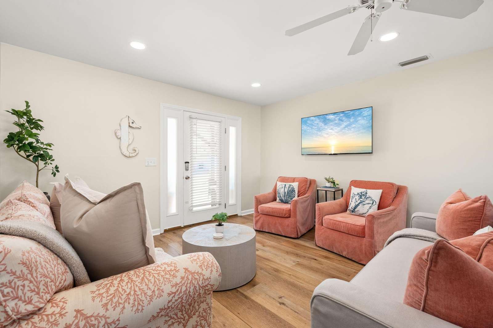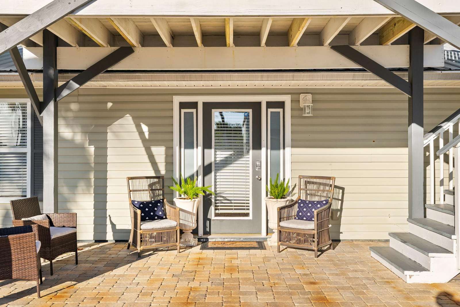 • Quiet residential setting that feels tucked away while remaining walkable to the beach.