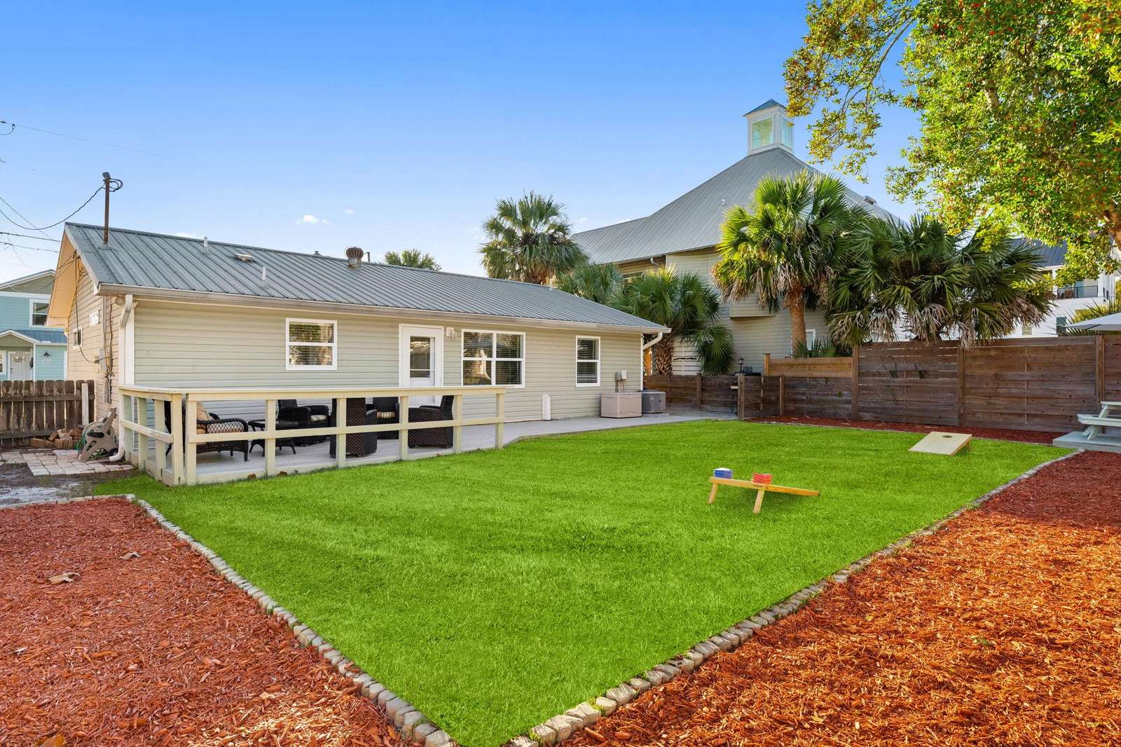 • Expansive private backyard, perfect for lawn games, grilling, lounging, or letting kids play safely.