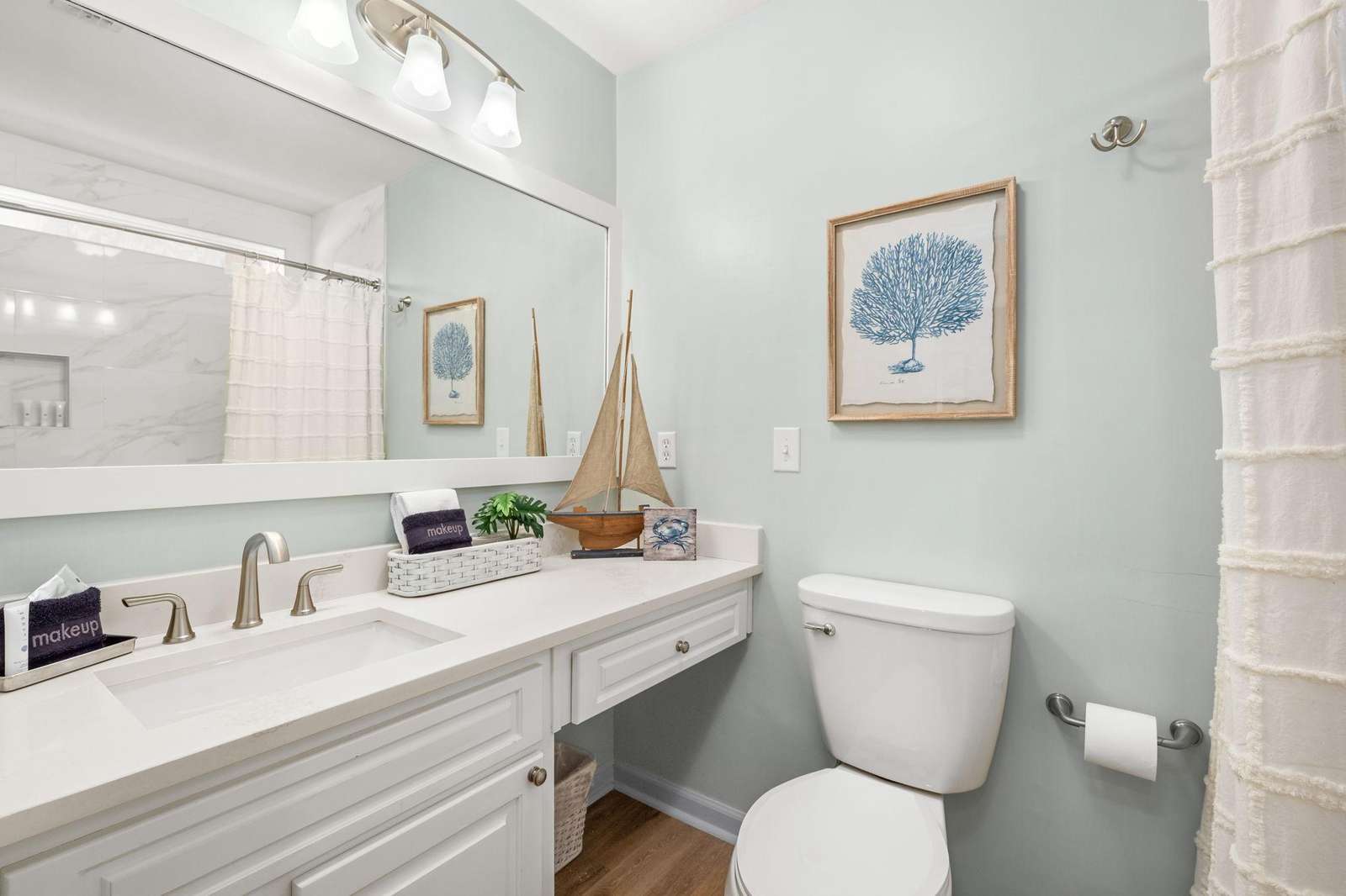 Guest Bathroom: Tub/Shower Combo, Toilet, Single Vanity, Hair Dryer