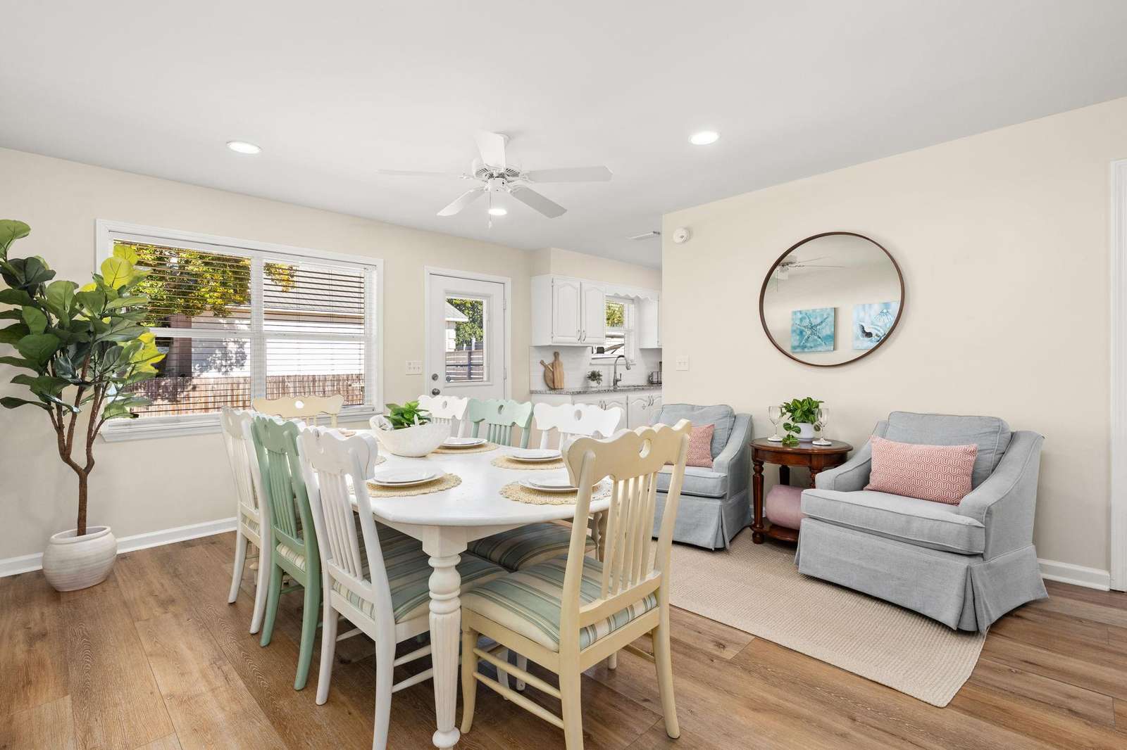 • Single-level floor plan with 3 bedrooms and 2 full bathrooms, ideal for families and multigenerational stays.
