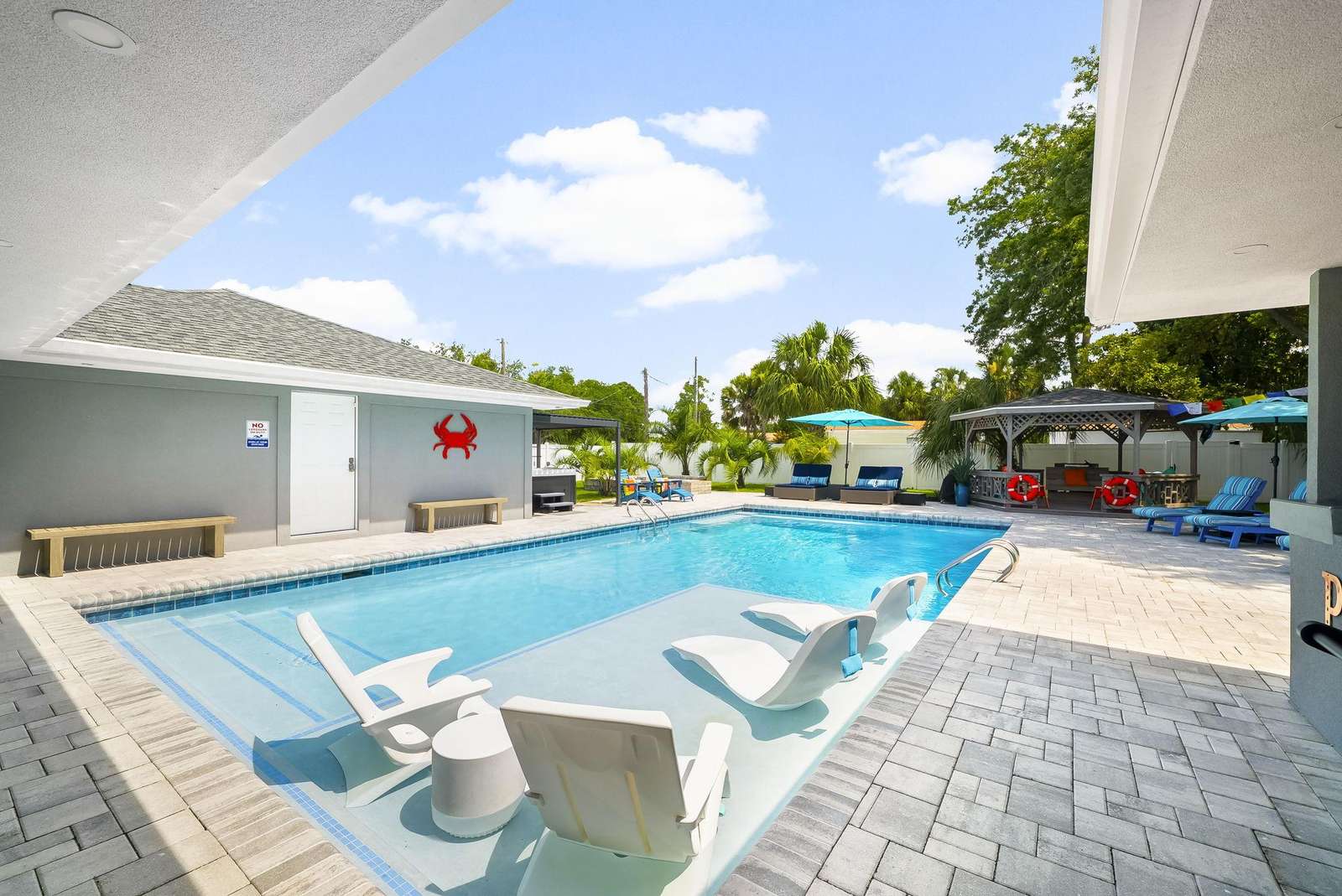Welcome to License to Chill, your ultimate family retreat in Panama City Beach! This newly remodeled 4-bedroom, 4-bathroom haven blends coastal luxury with laid-back comfort, offering everything you need for an unforgettable vacation. The heart of the home features a fantastic kitchen with a huge island, double ovens, and an oversized refrigerator. Whether you're whipping up a quick snack or a family feast, this space is fully equipped for your culinary needs. The open-concept living area offers a bright, inviting space to unwind after a day at the beach. With direct access to the backyard from the kitchen, main living space, and two bedrooms including the primary, indoor-outdoor living is as seamless as it gets. Step into a spacious backyard paradise spanning nearly half an acre. Dive into the stunning private pool, soak in the bubbling hot tub, or gather around the fire pit for evening stories. With plenty of space for both play and leisure, it's the perfect setting for family fun. Situated on an expansive corner lot in the heart of PCB's nostalgic East End, License to Chill is just minutes away from the pristine beaches accessible via Access 24 (0.5 mile). Enjoy easy access to local attractions, dining, and entertainment options, ensuring fun-filled days for the whole family. Where every detail is designed with family comfort and enjoyment in mind, this coastal retreat checks all the family's boxes!