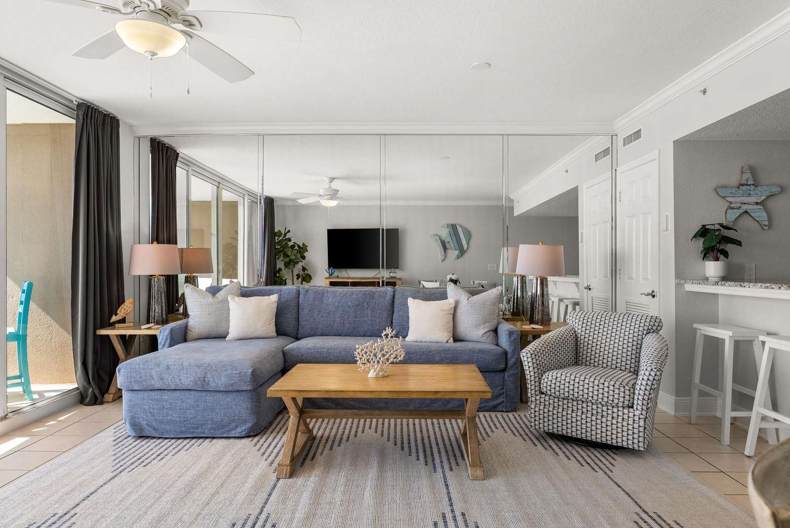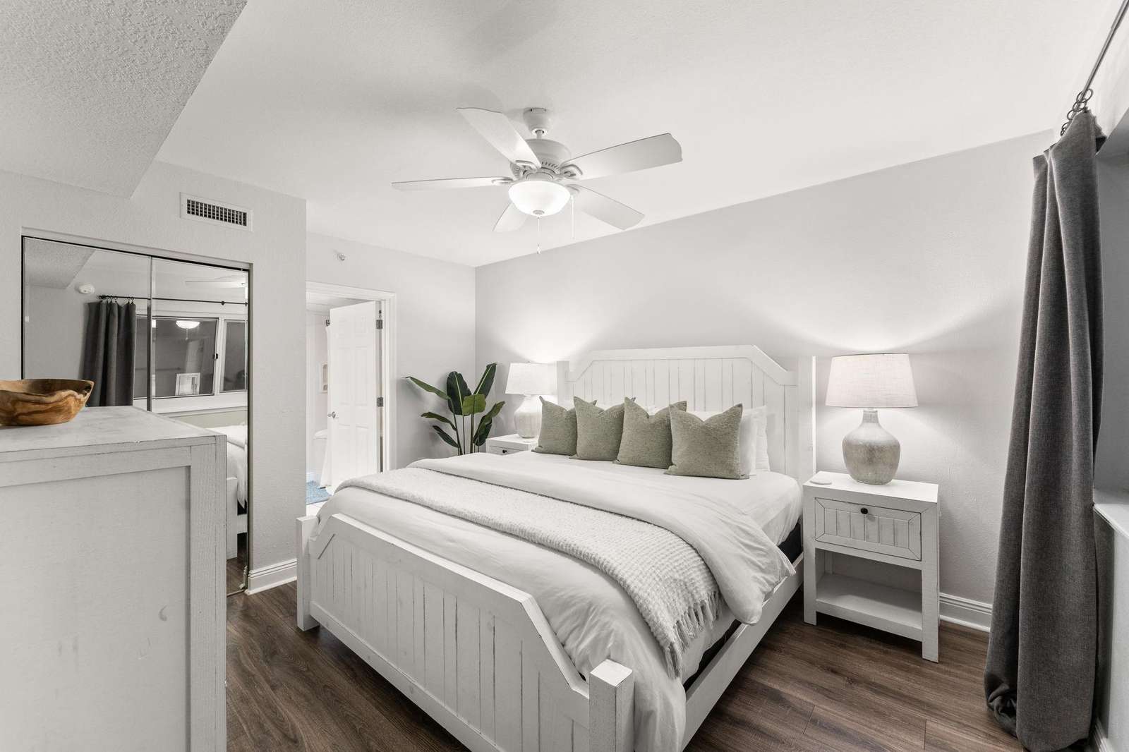 Experience clean and comfortable beachfront living in this beautiful 1-bedroom, 2-bathroom Gulf-front condo nestled on the white sandy shores of Panama City Beach, just 2 miles east of Pier Park. Enjoy Emerald Beach Resort's renowned convenience of private gated parking (two vehicles per reservation), multiple pools, a tiki bar, fitness center, game room, and outdoor game area. Take in the beautiful Gulf views and direct beach access with two beach loungers and an umbrella on the resort's private beach, complimentary during your stay (chair service unavailable 11/1 - 3/14). This condo has been updated as of April 2022 with new furnishings and decor, and fresh paint. Relax in all the comforts of home with Smart TVs, a fully stocked kitchen, and luxury bedding topped with plush feather down duvets. Other Emerald Beach Resort amenities for you to enjoy include an on-site Starbucks, a SkyBridge featuring a SkyBar which overlooks scenic Front Beach Road, 8 conveniently fast elevators, 24/7 Security, and oversized vehicle parking (inquire for availability).